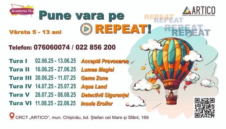 ARTICO – The Republican Center for Children and Youth invites all children and teenagers to spend an unforgettable summer at the ARTICO „ACADEMIA TA” Summer Club — an educational and entertaining project aimed at the harmonious development of children during the summer holidays.